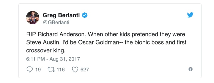 After learning of Anderson's death, co-star Lee Majors said that he'd never met a man like him: