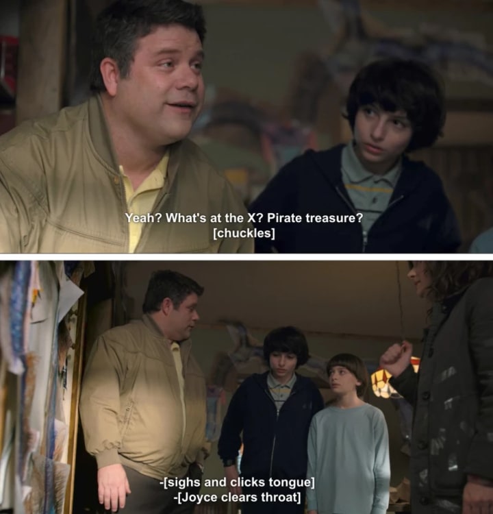 But did you miss something about Bob? Bob Newby is played by the ever handsome Sean Astin AKA Samwise Gamgee from The Lord of the Rings film trilogy and the adorable Mikey from The Goonies. Sean Astin has had a huge influence on the show, seeing as Mike Wheeler's character was initially based off of Mikey. If you haven't seen The Goonies, here is your quick catch up. A group of boys is chasing a treasure that belongs to the infamous pirate One Eyed-Willy because the main character, Mikey, has lost his house to the bank. They hunt for the treasure while a group of criminals does too. In the end not only do they find the treasure, but they reinforce their friendship and save Mikey's house. It's a classic 80s movie that is rewatched time and time again.