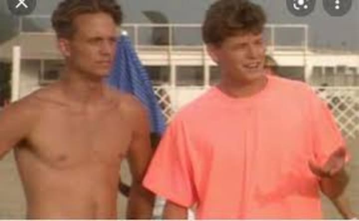 Recognize that guy in the tee on the right? That is a young Eric Dane appearing in a 1991 episode of Saved by the Bell--"The Game," which served as the second of the show's Malibu Sands episodes. The episode centered on Leon Carosi's yearly wager on the owner of North Beach, which involved a volleyball contest. Zack, in order to force Leon to be nice to him and his friends, claims that he and his crew are talented players, and it was during the practice, the group (including Stacey Carosi) is encountered by brothers Chad and Tad Pogue from North Beach. Tad was Dane's character, and this was his first ever role. I myself didn't recognize Dane until very recently, but that's definitely "McSteamy."