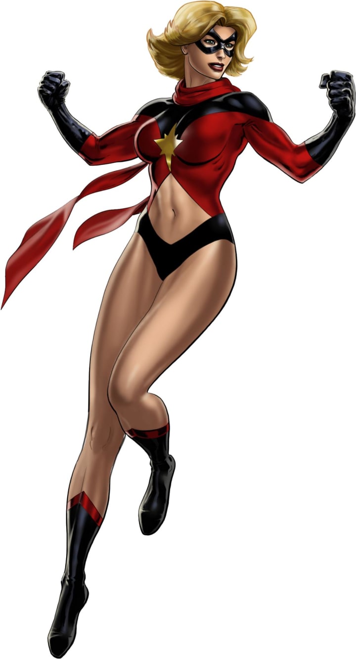 Her first outfit, which appeared back in 1977, saw her emulating her mentor's colours and design, the original Captain Marvel's. It was a classic move seen in hundreds of comic book character, where a male and female hero have similar looks to associate them together. One thing Carol's female variation did show was much more skin than your average hero. It does make you wonder how she flew at such high altitudes and speeds, but never got a chill. I guess it must be the bonus to some Kree DNA in your genetic makeup.