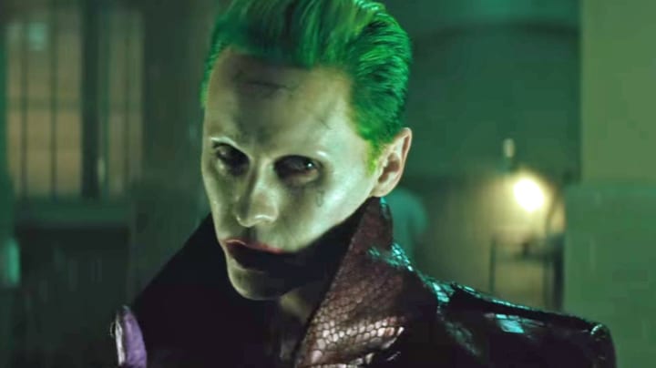 The Joker is portrayed by Jared Leto as a psychopathic crime boss. He plays psychological games. This Joker was given tattoos for a modernized gangster look.