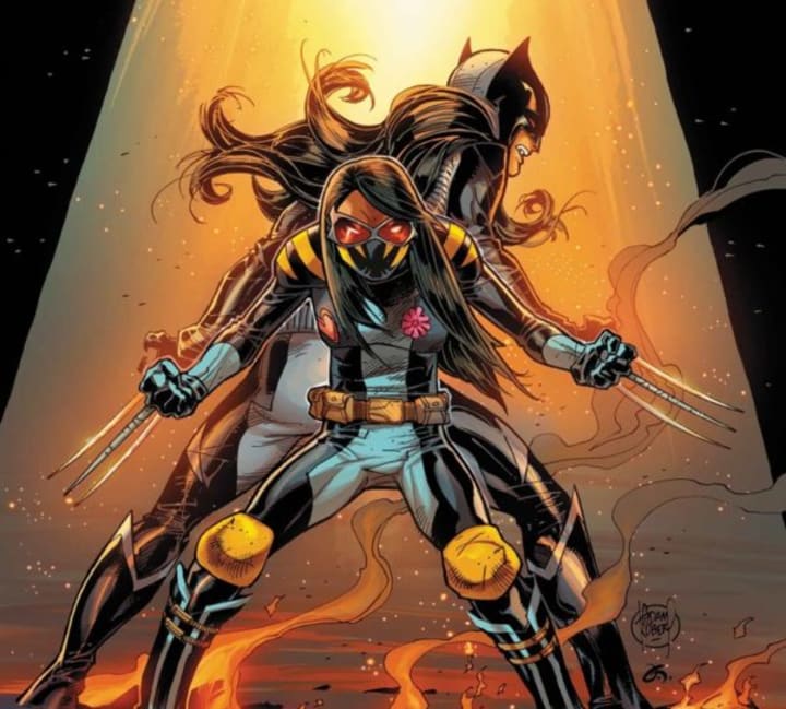 Many know Laura from the 2017 movie, Logan as the partial clone/daughter of Wolverine. In the comics, Laura was intended to be a clone of Wolverine, however, the genetic sample they were going to use to make the clone was incomplete. So a scientist named Sarah Kinney used her DNA to fill in the gaps where Wolverine's was. This is why I say she is a partial clone, but really she is kind of a daughter as well because of the fact that she has the genes of two people, which could be seen as her parentage. The only difference is she was not conceived by conventional means.