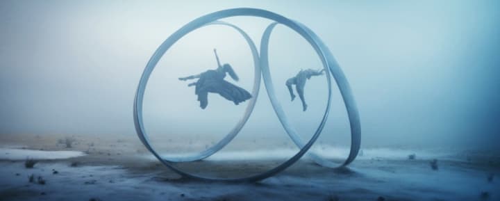 This visually stunning cinematic sequence is pure ballet as Moraine finds herself suspended in thin air within the rings and being turned over time and time again as her thousands of possible futures flash before her eyes.