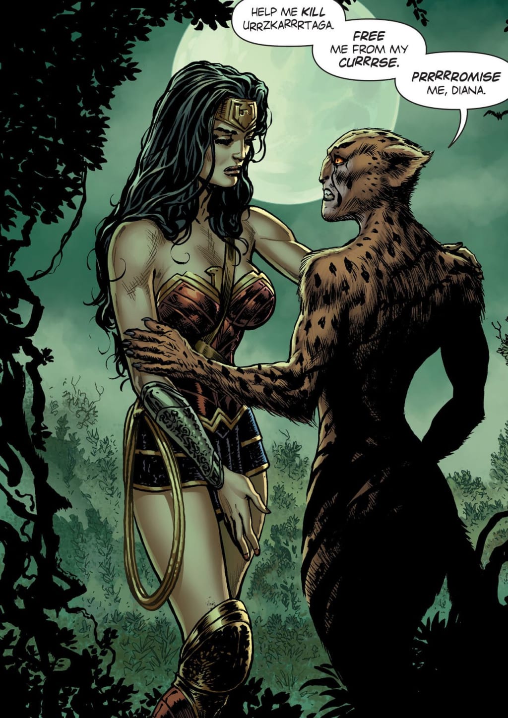 When I think of Wonder Woman’s villains, Cheetah is at the top of the list. She is an incredibly memorable, terrifying, and tragic figure that is both Diana’s beloved companion and her arch-nemesis. This is best exemplified by this exchange: