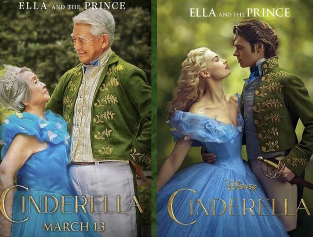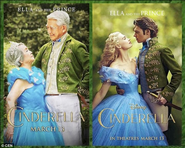 Here they are, dressed perfectly as Cinderella and her prince based on the poster for the 2015 version. It is beautiful to see the love in his eyes, and that smile on his face.