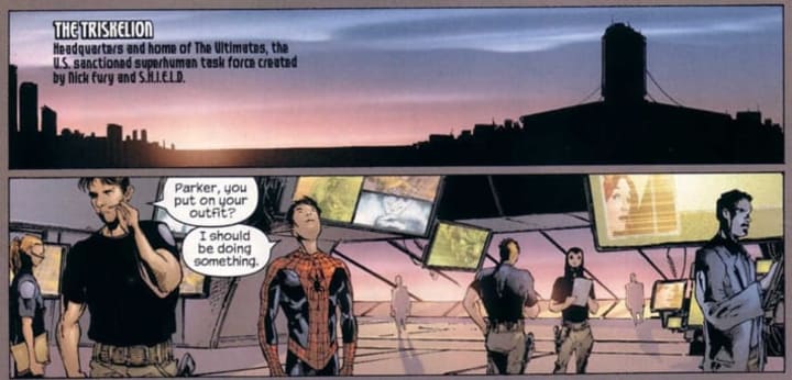 Spidey hangs out in the Triskellion in 'Ultimate Spider-Man'[Credit: Marvel Comics]