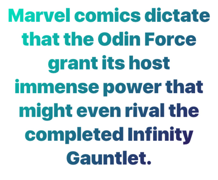 Marvel comics dictate that the Odin Force grant its host immense power that might even rival the completed Infinity Gauntlet. One of the powers granted to the Odin Force's host is the ability to manipulate a massive amount of magical energy, which is ideally the one we can attribute to Thor's new powered up look. Since it looks like Thor's body can't hold in all the energy it has within, it could be a sign of Thor barely learning how to control the new power gifted to him. That said, for Thor to receive the Odin Force power, its original bearer, Odin, has to die.
