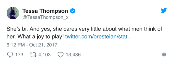 The weeks building up to Ragnarok's release saw a surprising controversy over whether or not Valkyrie is actually bisexual. Things all kicked off when Thompson, referring to the comic book version of the character, noted:
