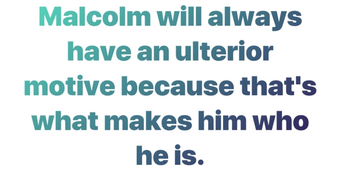 "Because Malcolm always appears and is always kind of coming out of the shadows. He’s very static. There’s no reason, there’s no backstory, there’s no telling of how he’s made his money."