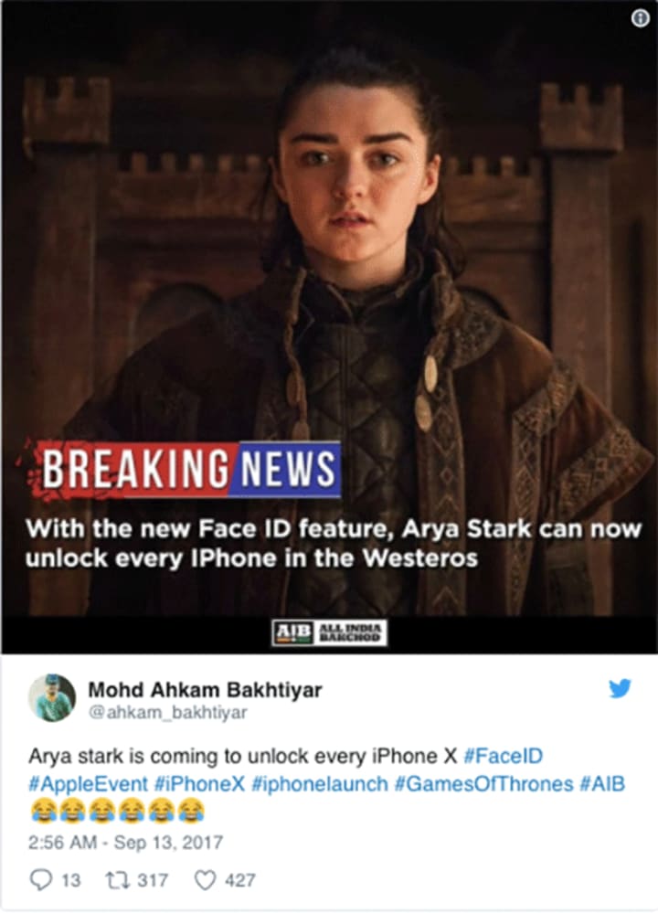 Time To 'Face' Your Critics: Fans Use 'Game Of Thrones' To Troll Apple's iPhone X