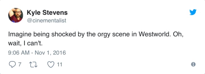 The outrage at the (now infamous) Westworld orgy comes just a week after The Walking Dead came under fire for its gratuitous head-smashing season opener. However, HBO aren't idiots, and just like the rest of their back catalogue of shows, the network knows that sex sells as much as violence does.