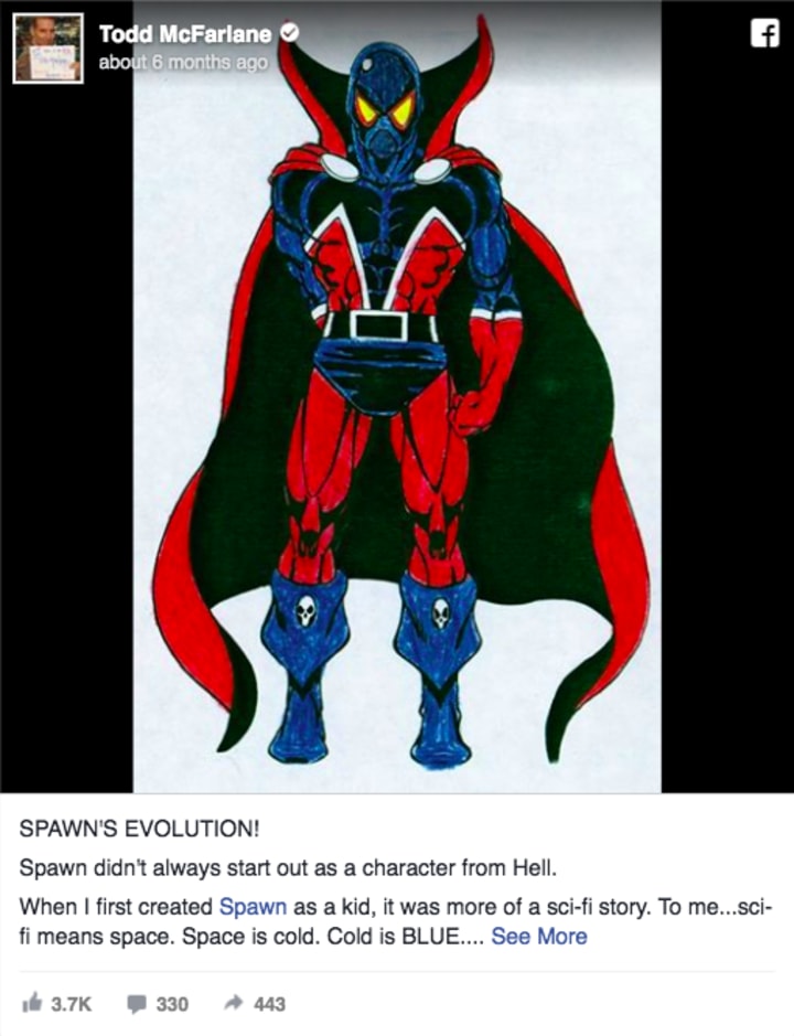 While McFarlane's artwork of Spawn is widely known among comic book fans, an image recently posted to McFarlane's Facebook page depicts one of the original sketches.