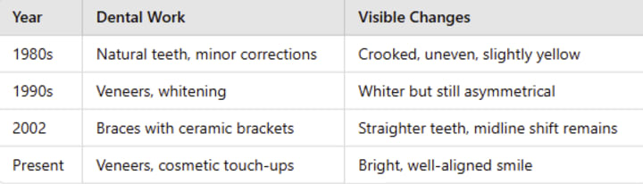 - Orthodontic Work: He experienced braces treatment in 2002, which moved forward his grin but didn't totally rectify the midline move.