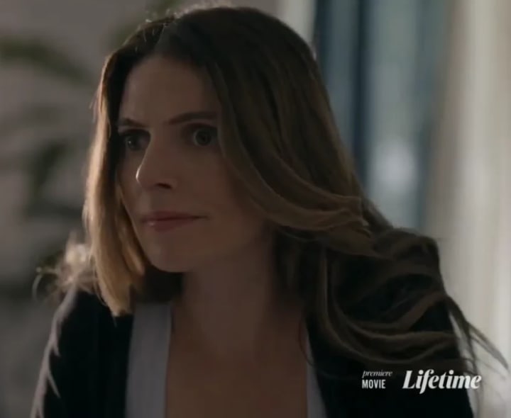 Sasha and Dan were actually husband and wife con artists (their real names were Emily and Chris Blake), and they banded together to target wealthy women, with Kellie as their latest victim. The couple would be confronted by their past victims, and while Sasha appeared to be arrested, we saw that she escaped custody in the final scene. Erin Agostino appeared in this film as the evil Sasha, and she played this villainous role very well, especially during her reveal. Her filmography includes a lot of holiday films, and this was only her second LT thriller. Here's hoping Agostino does more of these, including a possible sequel to this film where Sasha resurfaces to do more evil.