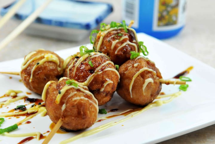 Takoyaki is often served with a series of sauces (including mayo), bonito flakes, and a little bit of chopped scallion. When prepared, it's a very savory treat. Curious about this classic Japanese food. You can learn how to make takoyakionline to get a feeling for what your favorite anime characters would have.