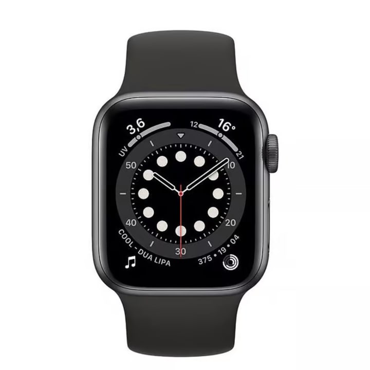 The Apple Watch Series 6 is one of the most advanced smartwatches available on the market. It has a bright, always-on display and is powered by the S6 chip, which provides a fast and seamless performance. The Series 6 offers a range of health and fitness features, including a heart rate monitor, ECG, and blood oxygen level sensor. It can also track your daily activities, sleep, and workouts, and offers personalized coaching and challenges. The Apple Watch Series 6 is water-resistant and can be used to make calls, send messages, and stream music. It is compatible with a wide range of apps and comes in a variety of colors and band options.