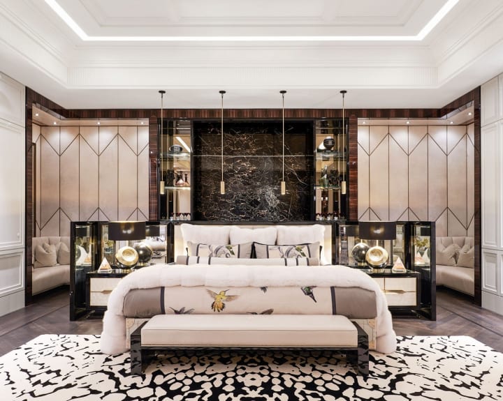 Amenities here are almost limitless with an NBA sized basketball court, 21 square foot pyramid skylight and sculptures by Kaws Flank line the marble entrance-way.