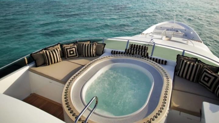 Woods requires a crew of nine to operate this behemoth and the relaxation deck is large featuring an 8 person Jacuzzi and the whole boat costs $2 million dollars a year to run.