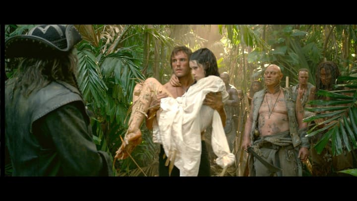 The narrative branches, following multiple characters pursuing their own agendas. Will, forced to serve aboard the Flying Dutchman, witnesses Jones' cruelty and discovers his tragic backstory. Elizabeth, freed from prison, sets off to find Will, her journey culminating in a daring escape from cannibal island Pelegosto. Jack, meanwhile, attempts to evade Jones and use the Dead Man's Chest to control him, a plan complicated by everyone wanting the chest for their own purposes.