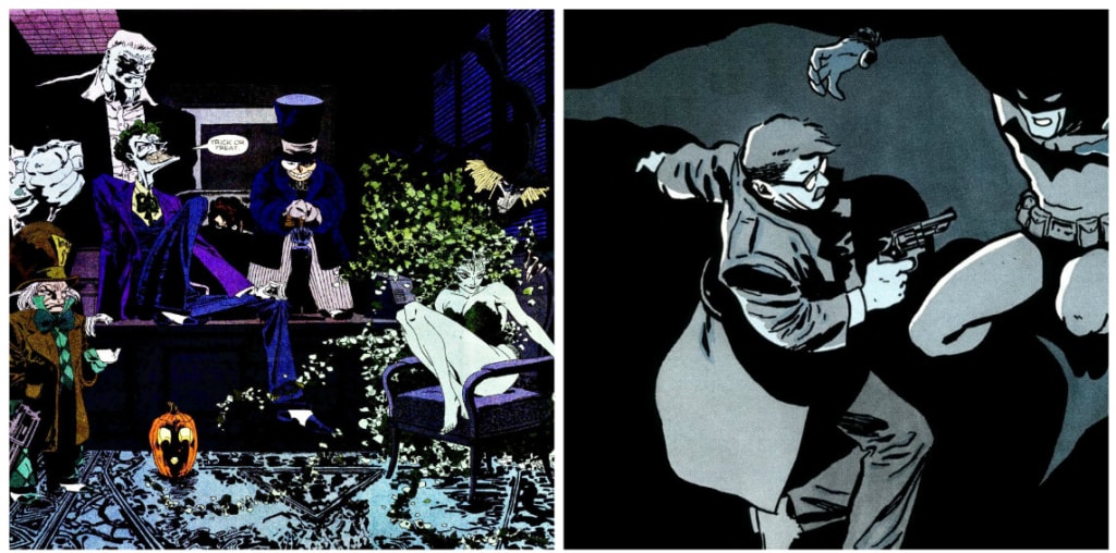 Also featuring an expansive rogue's gallery of Batman's usual foes, The Long Halloween includes the likes of Mad Hatter, Poison Ivy, Solomon Grundy, Scarecrow, Catwoman, the Penguin, and the Joker - all of which we have already seen (or been teased) on the show. We already know that #CameronMonaghan's Jerome Valeska's proto-Joker is locked up in Arkham, so Season 4 could be a prime time for him to break out once again.