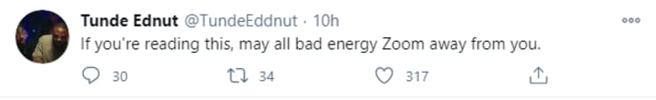 If you're reading this, may all bad energy Zoom away from you.