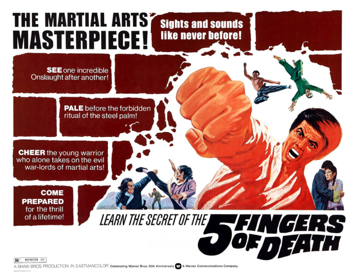When it was released to theaters in the US, Five Fingers of Death (a.k.a. King Boxer) had the enviable position of being , as touted by the rights holder Warner Brothers Studios: “the first international martial arts movie sensation.” It was the first of such films to be released by a mainstream US distributor and other films of varying levels of quality quickly followed.
