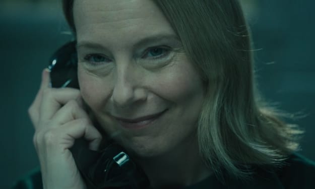 We later see a mysterious hooded figure dousing the house with gasoline, and from the looks of it, as the late, great Yogi Berra once quipped, "It's deja vu all over again." The figure was spotted by Mary, who called 911, leading to police arriving and confronting the culprit. To Mary's surprise, the hooded figure is none other than Tiffany, and not only that, the sinister villainess displayed bright, piercing blue eyes, which revealed that Stuart's spirit possessed Tiffany. The closing narration revealed that Tiffany was arrested, and after she was released, she ended things with Tom, and things in the house returned to normal.