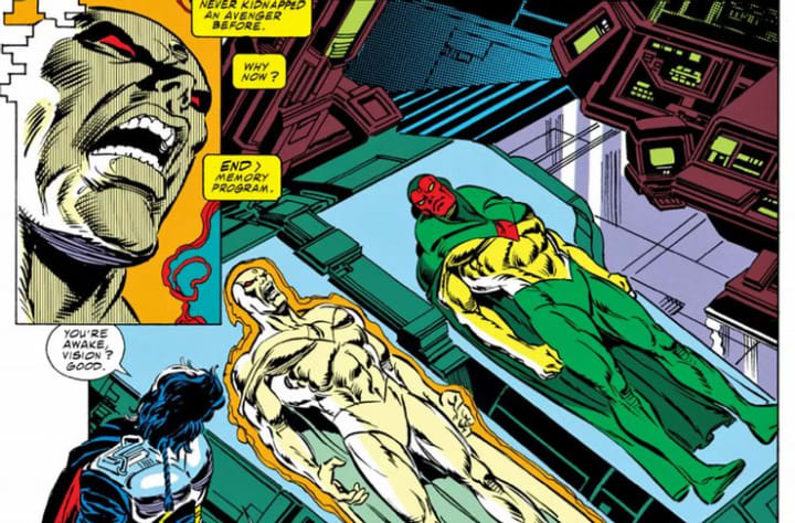 Without his skin, or human brain patterns, the rebuilt Vision emerges as a colourless, emotionless shadow of his former self. He is no longer able to feel love for Wanda, or their children. 'Vision Quest' is now known for being the story that began The Scarlet Witch's descent into madness. Shortly after losing 'her' Vision, Wanda suffers another tragic loss when the souls of Tommy and Billy are absorbed by Mephisto. These losses eventually led to the events of 'Avengers Disassembled', and 'House Of M'.
