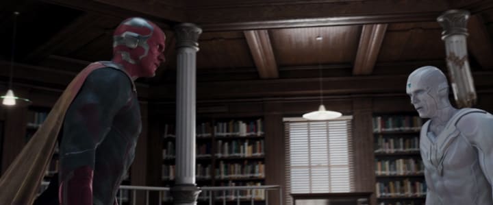 Vision believes White Vision is the 'real' Vision, and restores his memories that had been blocked by Hayward. White Vision declares himself to be Vision, then leaves, not seen again for the rest of the episode. His whereabouts remain unknown, likely to be revealed in a future MCU project.