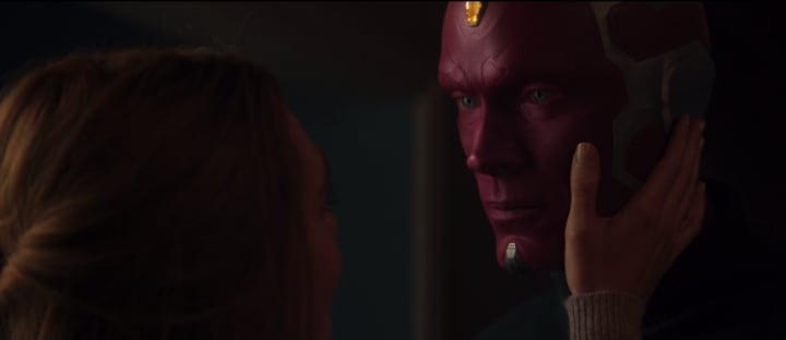 As her spell on Westview comes to an end, Wanda is forced to say Goodbye to Tommy and Billy, and then, once again, to Vision too. Wanda tells Vision that he was born from the piece of the Mind Stone that lives within her, and before Vision fades, both promise that, somehow, they will see each other again.