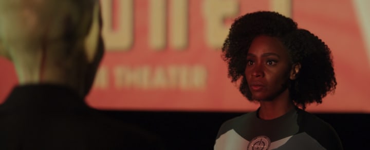 After happily overseeing Hayward's arrest, Monica is asked to a meeting in Westview's theatre. There, the FBI agent she had been talking to reveals herself as a Skrull. The Skrull claims to have been sent by an old friend of Monica's Mother, who wants to meet with Monica in Space.