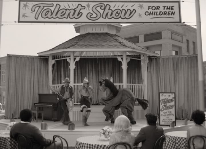 Usually, you would expect a School Fundraiser to have children in attendance. But there are no children in the audience. In fact, we haven't seen any children in Westview at all. Perhaps we'll see more around once the twins are born, probably towards the end of next episode. For now, however, the realisation adds to the uncanny valley nature of the whole show.