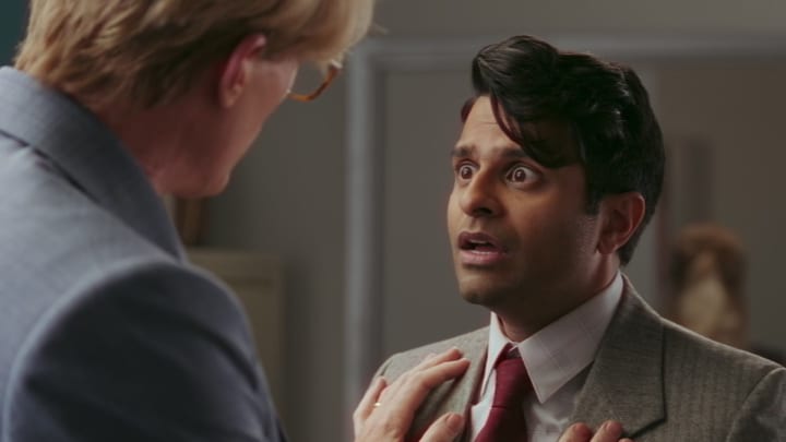 Surprisingly, one of the show's freakiest scenes comes from the otherwise goofy and unsuspecting Norm (Asif Ali), Vision's work buddy. During a scene in which Vision and Norm are discussing the implimentation of computers in the workplace and emails, Vision and Norm discover an email from Darcy Lewis (Kat Dennings) which signals to Vision that something is drastically wrong in his otherwise perfect world. Upon releasing Norm from a presumed hypnotic state, Vision tries to calm a panicked Norm, asking him to explain what's going on. Unfortunately for Vision, Norm can't seem to relax, frantically asking after his sister and announcing "she's in my head." Whilst this makes a lot more sense for viewers now with the knowledge that both Wanda and Agatha have some divided control over the townsfolk, the scene in context of the episode was quite frightening and concerning. This becomes one of the first key moments of the series in which we start to hear Wanda spoken about in a potentially villainous light.