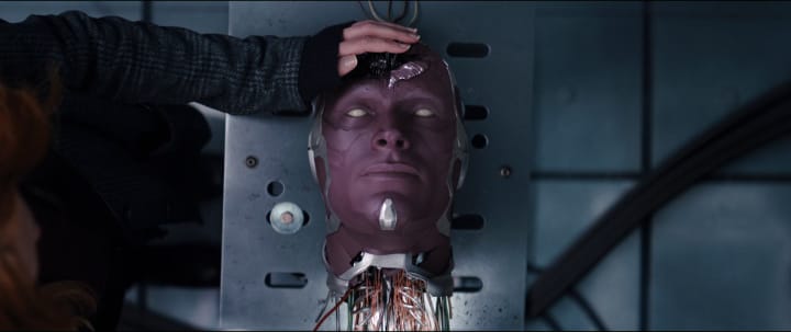 In the sixth episode, after exploring the outer regions of Westview, a confused and upset Vision begins to put the pieces together about the town and it's trapped inhabitants. Doing what every great superhero does best, Vision puts them before his own safety and takes a risk, pushing his way through the Hex to reach whoever waits on the other side. Unlucky for him, he is met by armed soldiers, Hayward and an outmanned Darcy Lewis who is the only person willing to help him. As Vision begs for help for the people in the Hex (and noteably never for himself), his outershell starts tearing apart and we witness as he begins to die all over again. As Darcy watches on in horror, this truly stands as Vision's most incredible scene in the series thus far. The scene comes with the knowledge from the fifth episode that Vision does not remember life before Westview, and so his heroic actions only further amplify his kind nature, transforming into a self-sacrificing hero all over again.