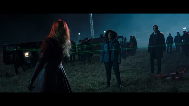 As if a relatively dark Wanda wasn't already too much when we witnessed Wanda blast Monica right out of town, a devilish Hayward decides to make matters worse for S.W.O.R.D's reputation in Wanda's mind, as he launches what Monica believed to be just a camera into the Hex. When it's revealed to be a weapon, Wanda feels the need to deliver the weapon back personally, confronting Hayward and Monica in the process. In one of the most tense scenes of the season, Monica tries to rationalise with a agitated and frightening Wanda, who seems remarkably unphased by the guns all pointing at her. Instructing S.W.O.R.D, Hayward and Monica to leave her alone, we get to see Wanda show off her magic a little, shifting the guns to all point at Hayward before strutting back into the Hex. Whilst dark and quite worrying for those who are concerned about Wanda's future as a potential villain in the MCU, the scene is one of Elizabeth Olsen's best, and she looks rather bad*ss.
