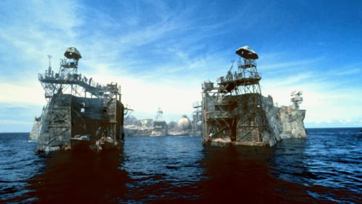 That obviously would have resulted in a much dryer and less impactful movie, and Rader says that he and Reynolds were adamant that they wanted to make “something that heralded this urgent concern for the planet, but in the guise of a popcorn movie”. In order to achieve that, they filled Waterworld with a series of environmental references, including making the villainous Smokers’ headquarters the Exxon Valdez, an oil tanker that crashed off the coast of Alaska in 1989 and spilled 10.8 million gallons of crude oil in the ocean.