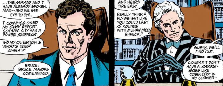 It is often the whole city government. The mayor’s office can often be found to be taking bribes or conspiring with the same people the GCPD is pursuing for felonies. It seems the whole city can be corrupted, right down to city inspectors who can make anything look legal. Shipments signed off on without so much as opening the container, permits rushed under shady circumstances, and many other offenses are hidden right in plain sight. This isn’t only for your organized crime organizations, either. Business leaders like Max Shreck and Derek Powers often held more power than any government.