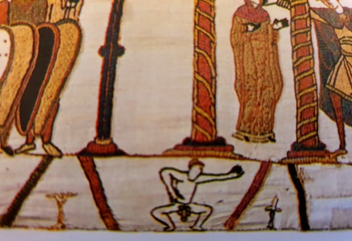 We’ve all been there. Maybe it was on the Internet or maybe you were lucky enough to be there in person. I’m talking about viewing the Bayeux Tapestry, probably the most recognisable and iconic piece of medieval art. But as serious as the Tapestry is, every now and then, she throws us a massive curveball. This is what I’m talking about: