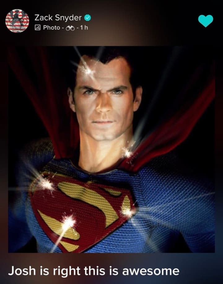 Shared on Vero, Snyder agrees with someone names Josh that Evangelista's work is the bee's knees, and it isn't hard to see why. The image is a modern interpretation of the iconic, bulletproof Superman image from Alex Ross, but this time we have swapped our comic book counterpart for a live-action #HenryCavill. While Snyder has stepped away from Justice League for personal reasons, it is still fantastic to see that he is so involved.