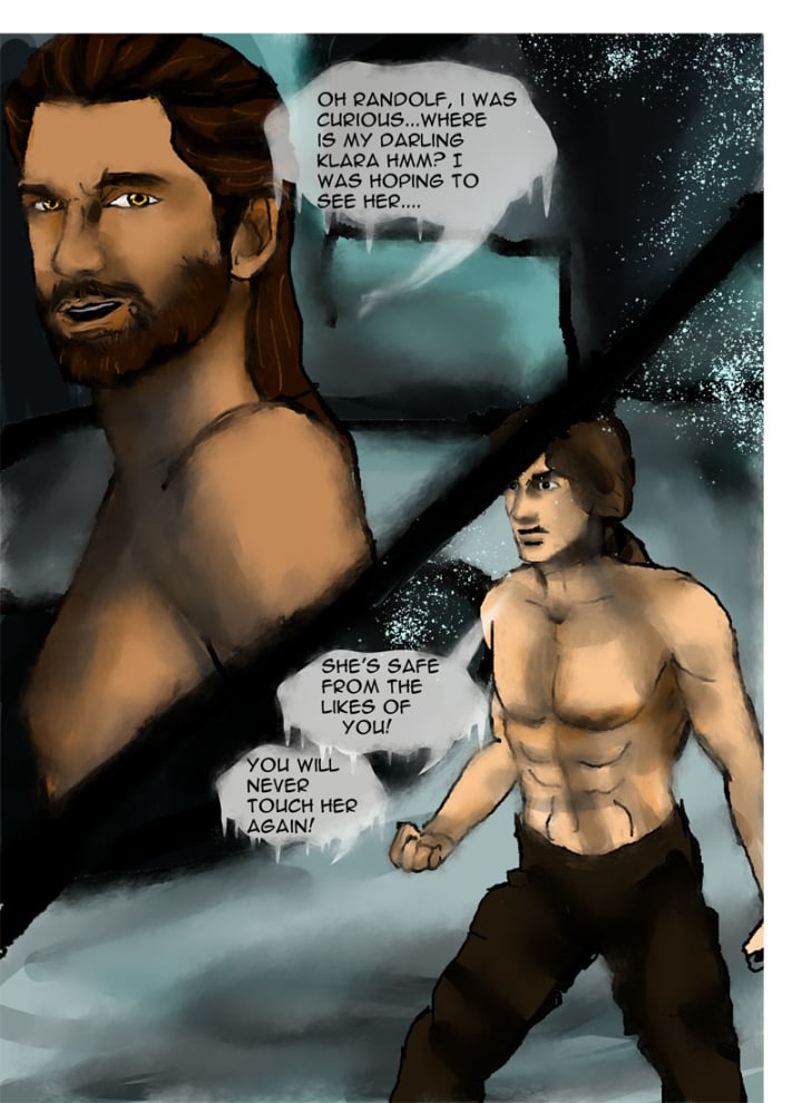 Gerrick stood and said, “Well, seems like Claus is a no show... So I shall take my leave.” Randolf stiffened when he walked past, anger surging through him. Gerrick paused then said, “Oh Randolf, I was curious... where is my darling Klara, hmm? I was hoping to see her...”