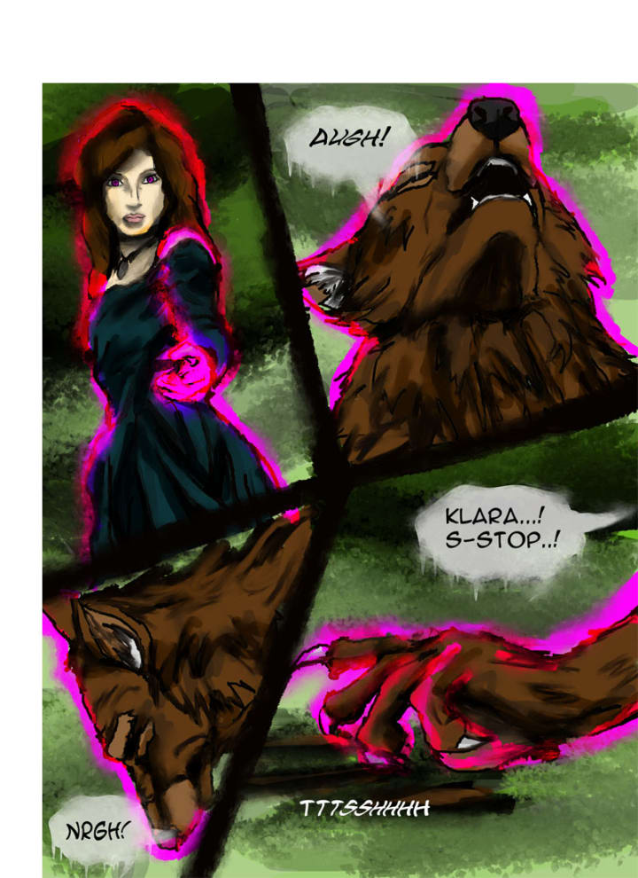 “Klara...” he shouted, his claws digging into the ground. “S-stop...!” She didn’t heed his words and the painful transformation continued until he was human again. It left him with little energy, he couldn’t fight or even stand. That didn’t stop Gertrude from giving Klara another order.