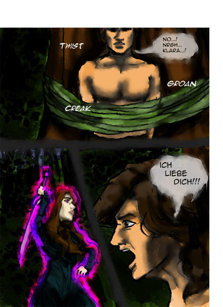 “Klara, ich liebe dich!” Randolf yelled. She froze, the sword held above her head. A moment passed... then another... still she didn’t move. Carina gingerly touched Klara’s foot, whispering,