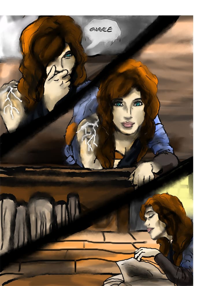 The wiccan giggled softly at his awkwardness. He felt like a little brother to her. After a quick glance, she found one volume that seemed the most intriguing. Sitting down at the table, she was about to read when Faelan returned, looking upset.
