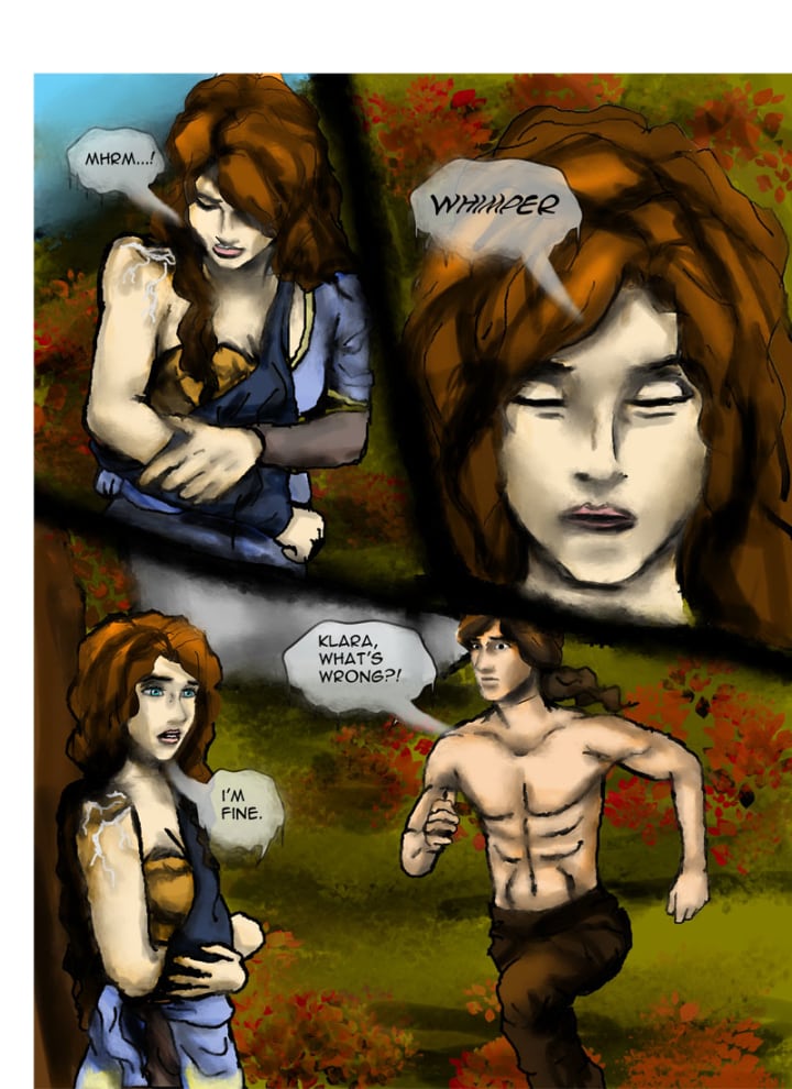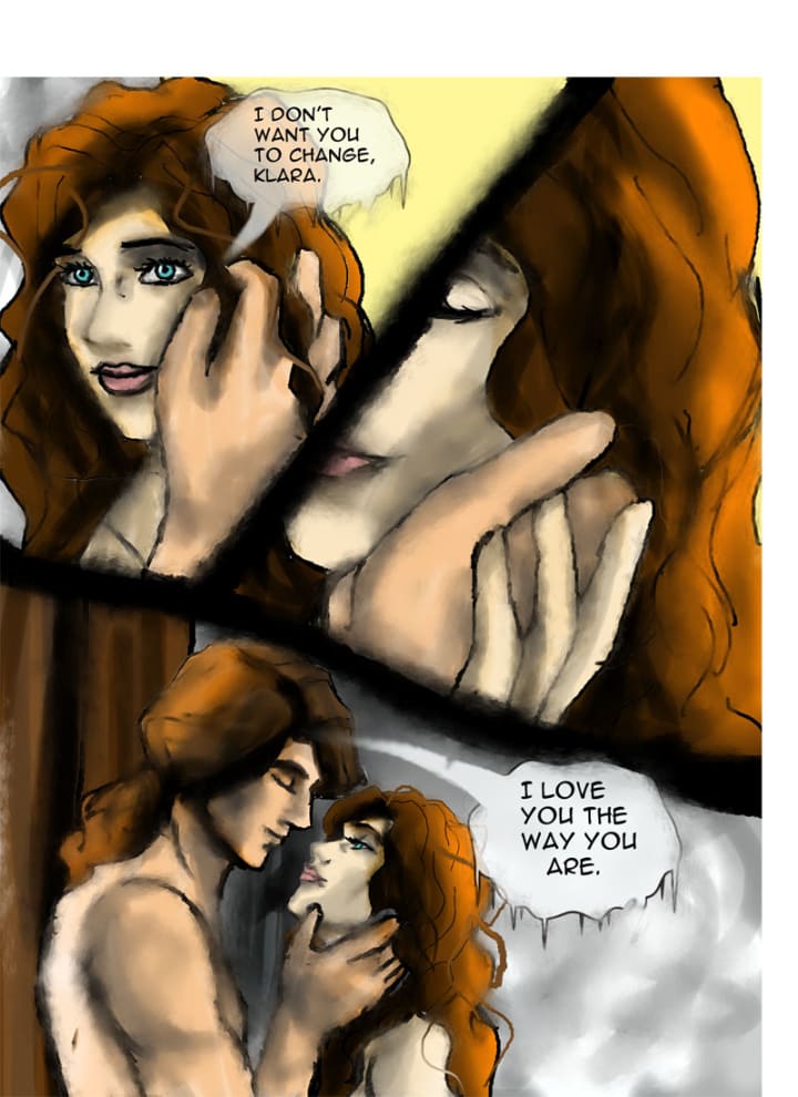 “Stop it!” Both turned to see Faelan emerging from the second room. “Yes you have battle wounds, it comes with the territory of being part of the wolf pack.” He said firmly. “But we see them as marks of glory, not disfigurement.” Klara blushed heavily.