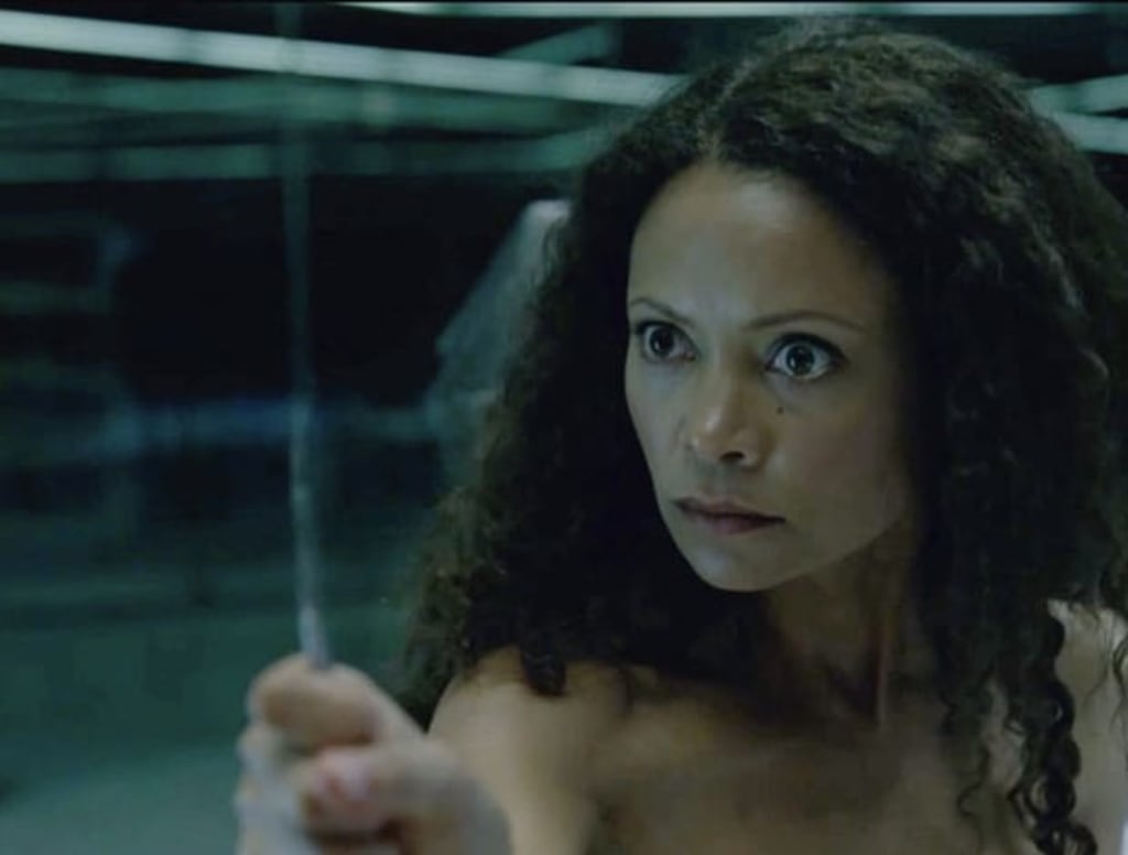 While it’s all very realistic (because that’s very important in a show about androids), none of it is balanced. The female hosts are often seen outside their environs being questioned and interrogated. Thandie Newton’s #Maeve spends an inordinate amount of time outside Sweetwater and her clothes, and the camera makes sure we know it.
