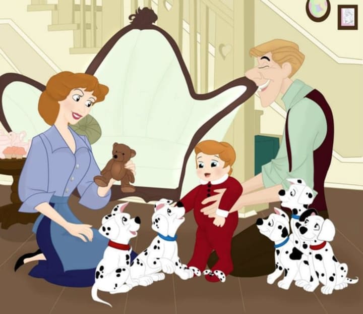 Their house is full of puppies, but don't forget that Anita and Roger had a puppy of their very own. Here they are with their son Henry, whose name means home. Fitting since most of the movie is about the dogs finding their way back home. This family is too sweet, though I am sure that house would get a little crowded after awhile, especially as the puppies grow.