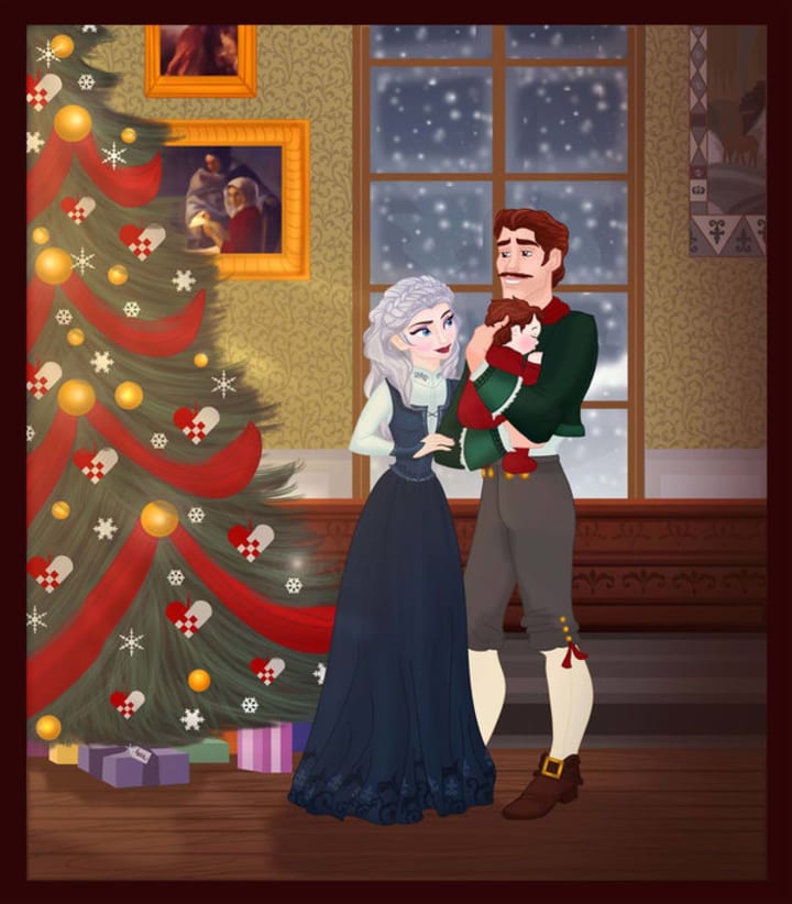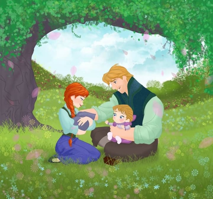 Kristoff and Anna are adorable in that they took their time getting to know each other and fall in love, unlike her experience with Hans. It is easy to imagine them settling down together eventually and having a family. Here they have a daughter named Anne Marie after Hans Christian Anderson's mother, and a son named Christian after the author. He is the one who wrote "The Snow Queen" which Frozen is loosely based off of.