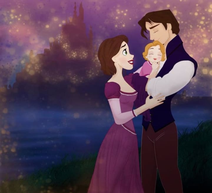 Rapunzel and Flynn appear to have found a new dream, welcoming a beautiful baby girl named Clara to the world. Clara means bright, or clear, which fits their journey perfectly. Though it may seem strange that she has blonde hair, the artist wanted to convey that there was still some magic left between Rapunzel and Flynn. She looks just as cute as her mother.
