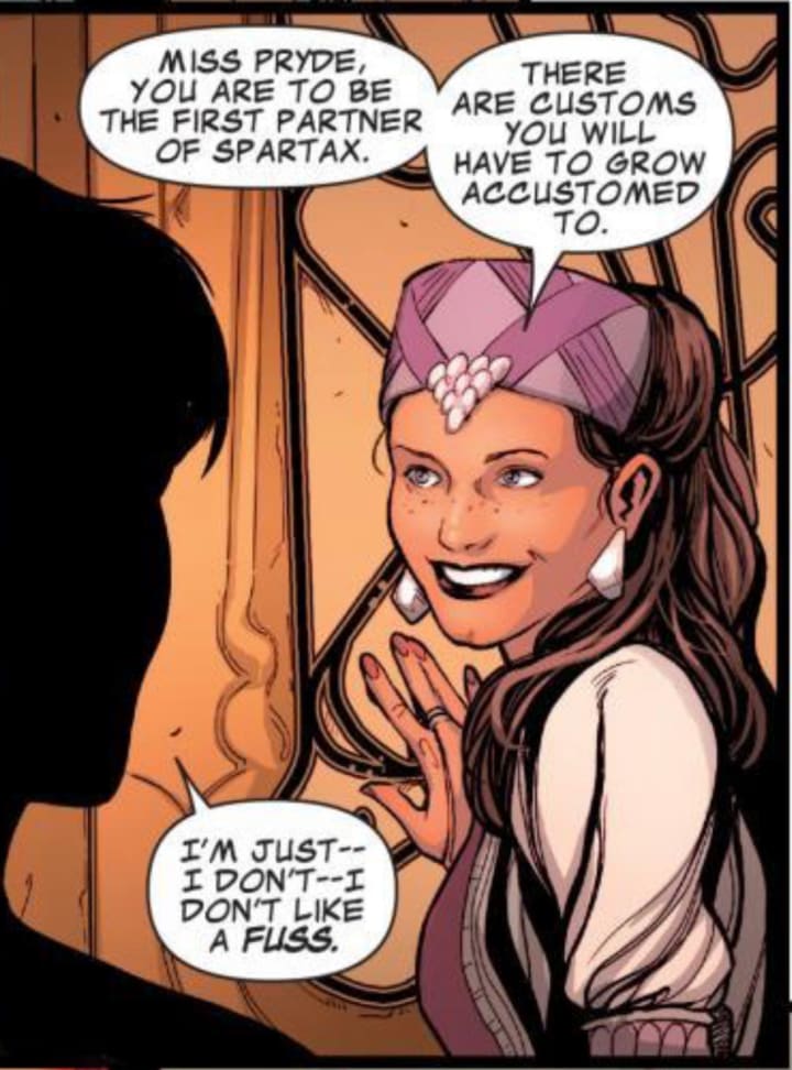 Had Kitty Pryde remained with Peter Quill, she would have been required to learn how to rule an entire planet. While she had substantial leadership experience from the X-Men, the Excalibur team, and as headteacher of the Jean Grey School, governing Spartax would have demanded a more nuanced combination of diplomacy and decisive action. Her pragmatic and moral nature could have led to significant reforms on the planet. She may have shifted Spartax from an imperialistic monarchy to a more fair and advanced system.
