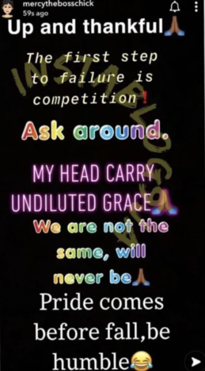 Mercy Eke took to Snapchat to post a story that reads: